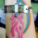 I chose a very simple stainless steel bracelet, wanting something obvious for first respondents, and something sturdy. Something I could shower with and never have to remove.