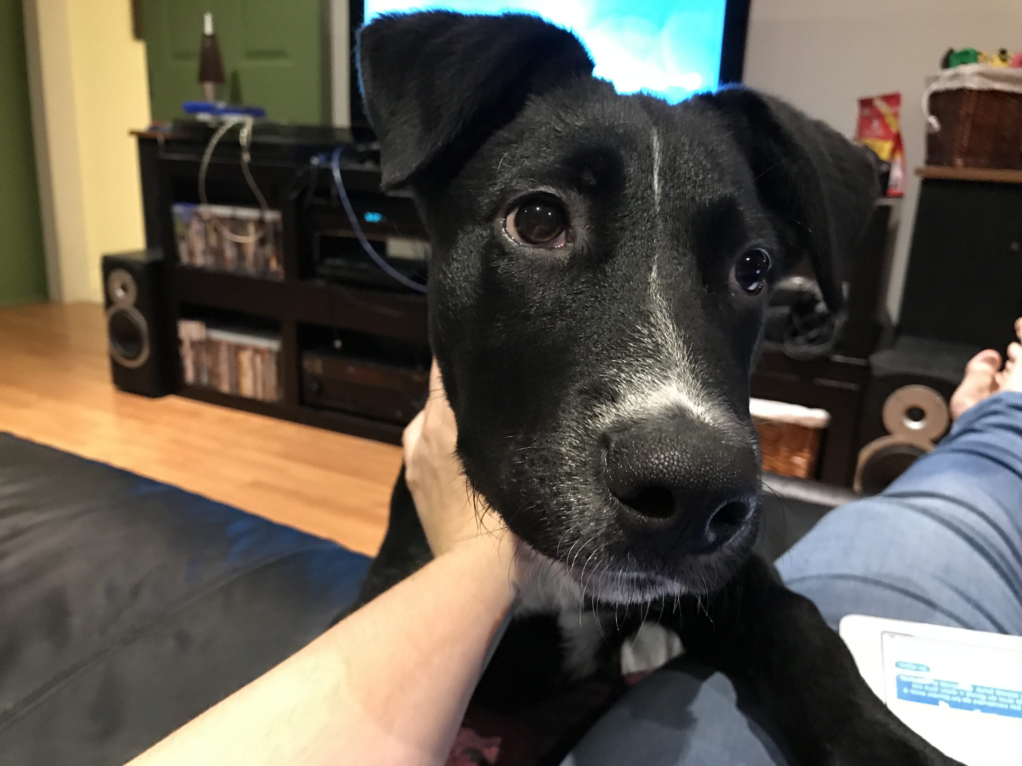 Nous avons finalement trouvé Jazz! Un mélange husky et labrador de quelques mois.