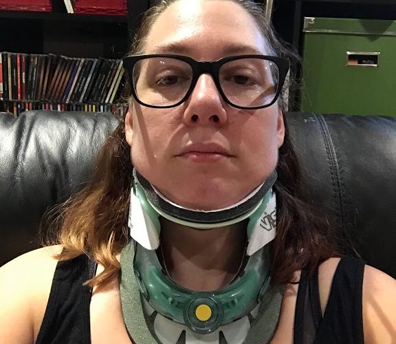 Donc, la suggestion est que, lorsque j’ai des douleurs dans la nuque, ou si je constate des vertiges ou si la médication ne semble pas faire effet, je porte le collet cervical pour quelques heures… et en général si c’était la cause, ça suffit à régler le problème. Je dois parfois continuer à porter le collet pour un ou deux jours au total, mais ça ne prend que quelques heures pour voir si c’était le problème.