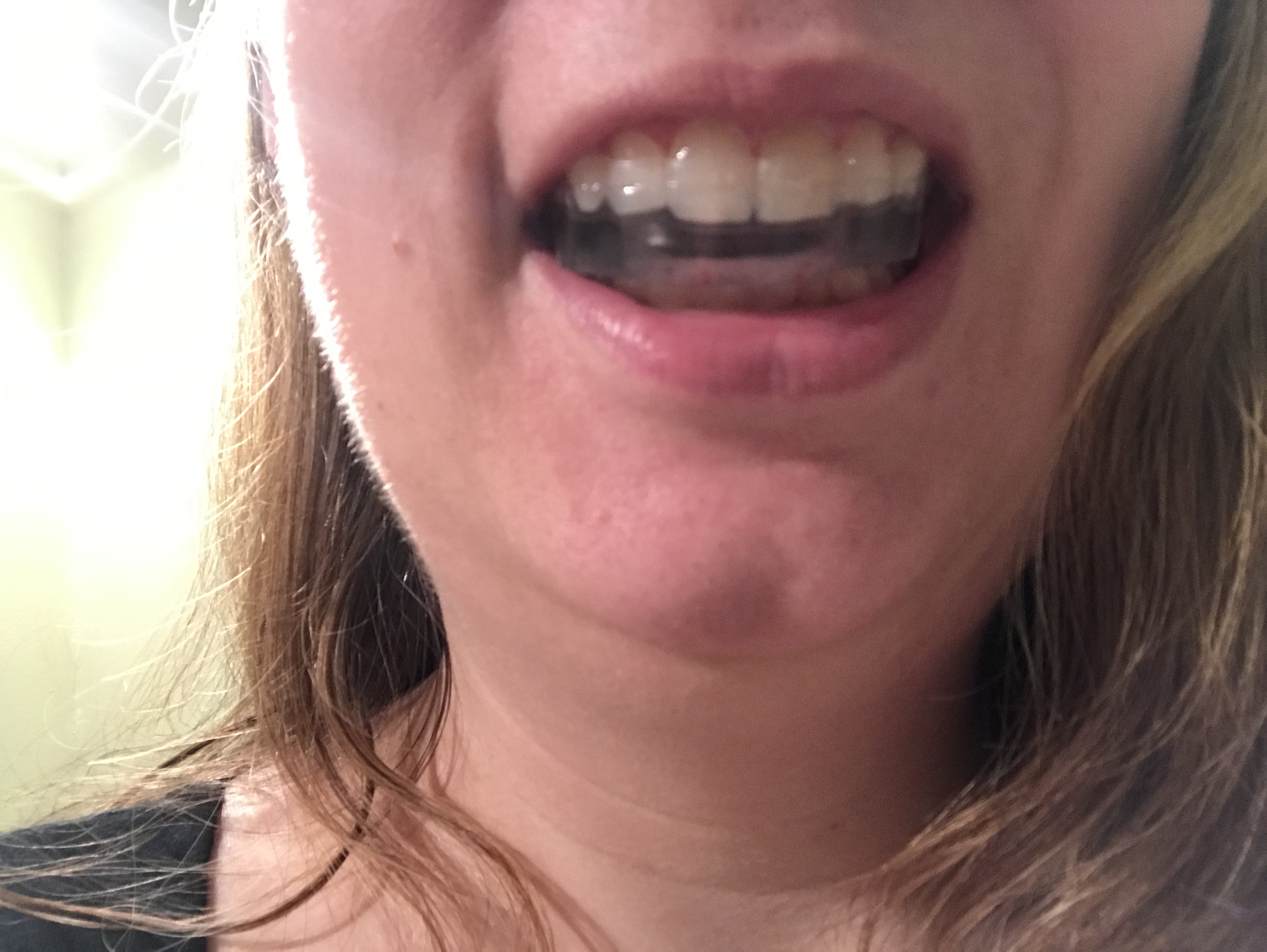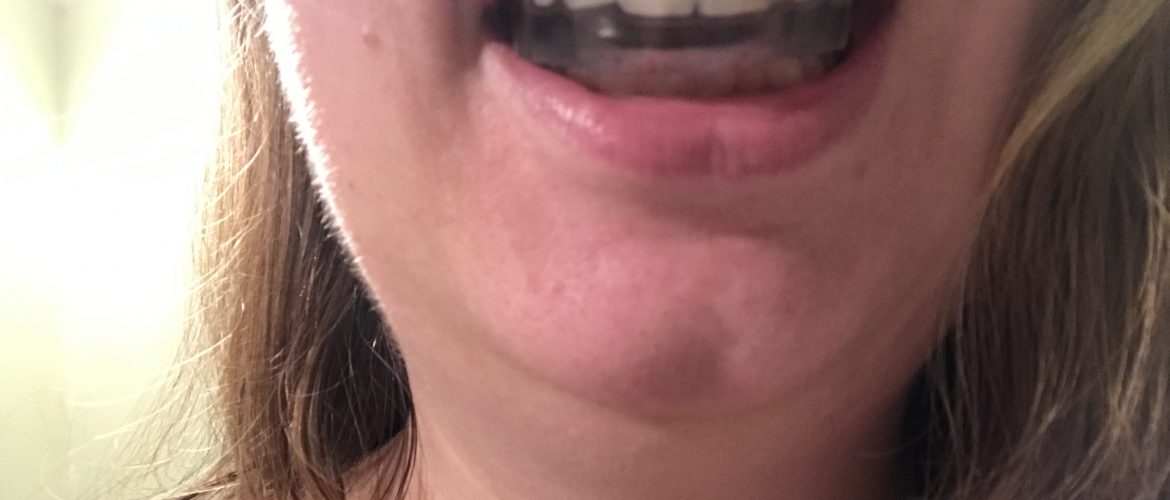 J’en avais déjà acheté une, un modèle générique de protecteur buccal en plastique transparent à la pharmacie pour moins de trente dollars, il y a de nombreuses années (j’oublie pour quelle raison, peut-être mon ancien dentiste l’avait-il suggéré exactement pour cette raison?) Je me souviens que je devais « mordre » dedans pour qu’il tienne en place, et ça n’aidait pas du tout… j’avais rapidement cessé de l’utiliser.