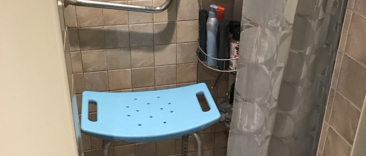 J’ai parfois besoin d’un banc dans la douche (je l’utiliserais plus souvent si la douche était plus grande). J’ai aussi besoin d’une barre d’appui (essentielle si je n’utilise pas le banc!).